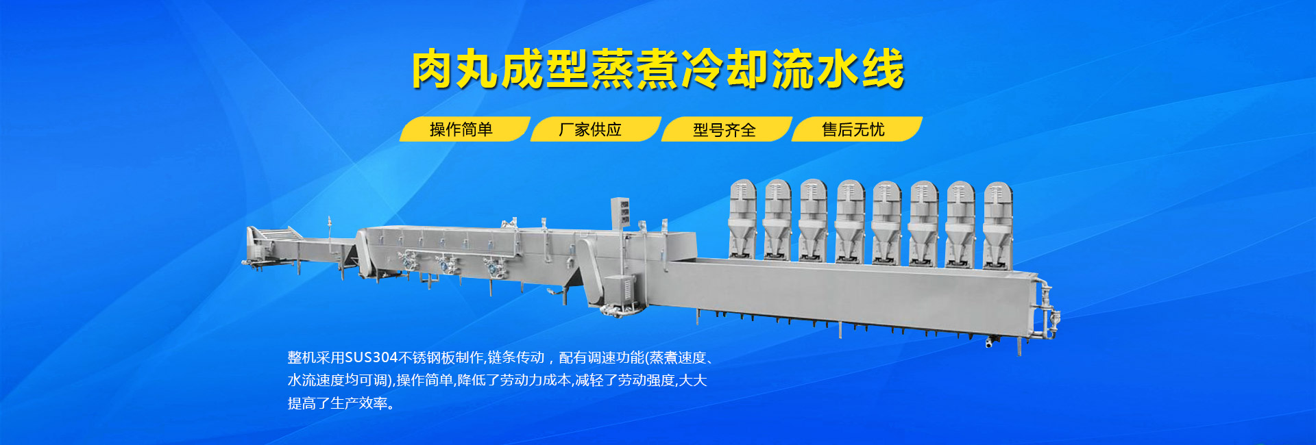 公司主要生產(chǎn)不銹鋼制品食品機械:各種規(guī)格型號真空滾揉機、制冷滾揉機、提升機、電加熱夾層鍋、肉丸機、真空攪拌機、絞肉機、灌腸機、打卡機、線扎機、斬拌機、鹽水注射機、煙熏爐、油炸機、巴氏殺菌線、連續(xù)油炸線、肉丸成型水煮線、醬鹵生產(chǎn)線、肉丸破碎機、真空包裝機、洗袋風(fēng)干機、豬頭劈半機、不銹鋼火腿模具、肉斗車、案桌、煙熏車、屠宰類機械設(shè)備、清洗風(fēng)干設(shè)備、肉類解凍設(shè)備、滾筒拌料機等。產(chǎn)品廣泛適用于火腿腸、肉丸、肉串、鹵制品、海產(chǎn)品、禽類深加工、油炸、泡椒風(fēng)味、速凍水餃、魚豆腐、千葉豆腐、豆腐干、牛肉干、牛排雞排類、禽蛋、麻辣、休閑、水果蔬菜清洗、中央廚房、餐飲連鎖、寵物食品等食品生產(chǎn)。